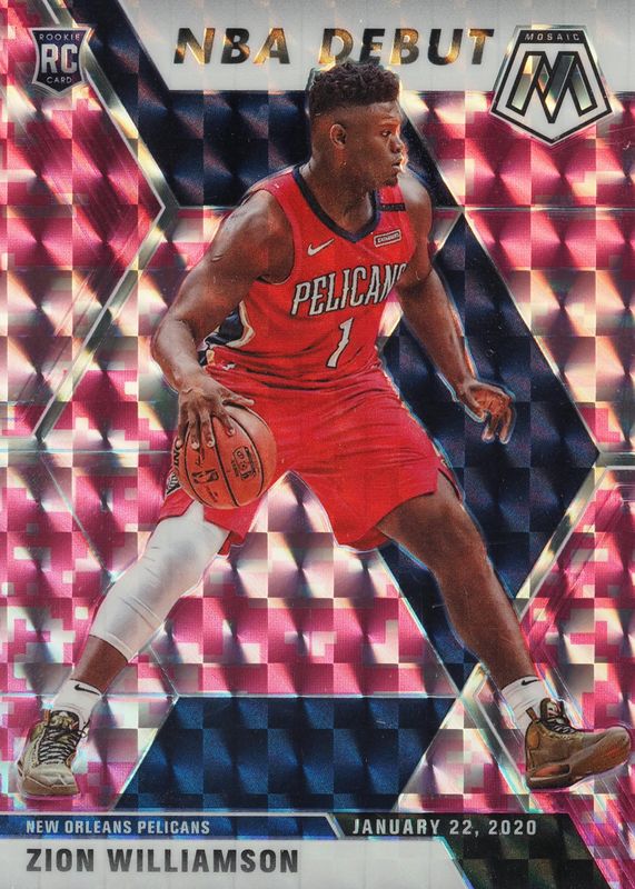 The Zion Williamson 2019 Mosaic #269 NBA Debut - Pink Camo Rookie card in Raw condition has not changed in price in the last 30 days and was last sold for $1.79 .