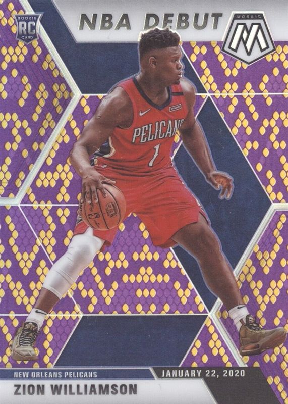 Zion Williamson 2019 Mosaic #269 NBA Debut - Snakeskin Purple & Gold /20 Rookie RAW Price Guide
