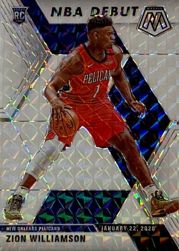 The Zion Williamson 2019 Mosaic #269 NBA Debut - White /25 Rookie card in Raw condition has not changed in price in the last 30 days and was last sold for $54.00 .