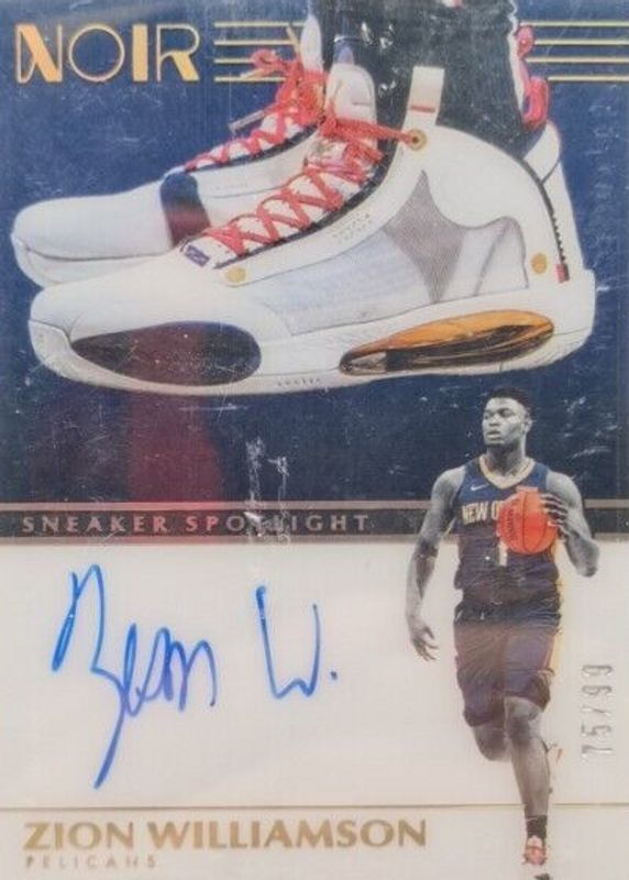The Zion Williamson 2019 Noir #SNS-ZW Sneaker Spotlight Autographs /99 Rookie card in Raw condition has not changed in price in the last 30 days and was last sold for $1,116.10 .