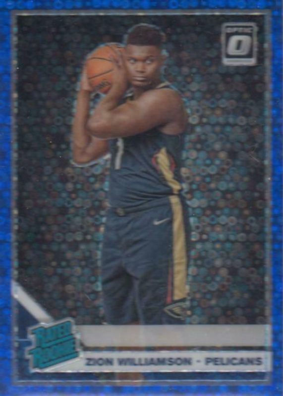 This card is 1 of 104 Zion Williamson's card variations in the 2019 Optic set being tracked by Sports Card Investor, including Base, Blue Velocity, Checkerboard, Choice, and Choice Red & Green.