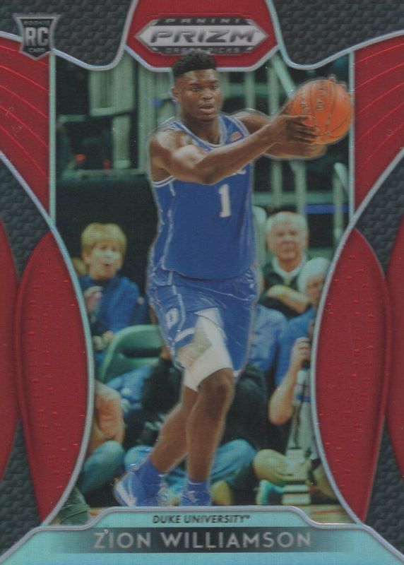The Zion Williamson 2019 Prizm Draft Picks #64 Red (Secondary Photo) Rookie card in Raw condition has not changed in price in the last 30 days and was last sold for $3.48 .