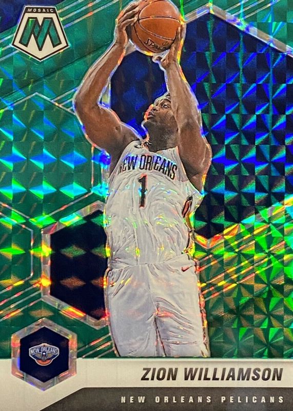 2020-21 Panini Mosaic #49 Zion Williamson Mosaic Green Card New Orleans Pelicans