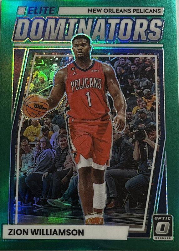 The Zion Williamson 2022 Optic #3 Elite Dominators - Green /5 card in Raw condition has not changed in price in the last 30 days and was last sold for $50.00 .