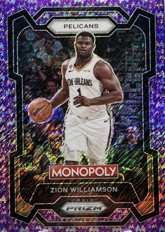 ZION WILLIAMSON 2023-24 Panini Prizm Monopoly #55 Purple Shimmer Prizms #39/50