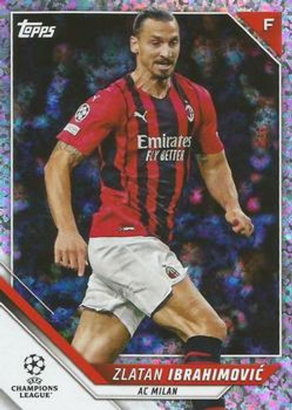 The Zlatan Ibrahimovic 2021 Topps UEFA Champions League #52 Sparkle Foil card is 1 of 26 Zlatan Ibrahimovic's card variations in the 2021 Topps UEFA Champions League set being tracked by Sports Card Investor, including Base, Starball Foil, Aqua Foil /299, Yellow Foil /250, and Neon Green Foil /199.