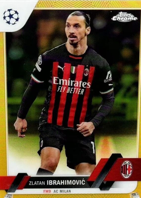 The Zlatan Ibrahimovic 2022 Topps Chrome UEFA Club Competitions #11 Gold Refractor /50 card in Raw condition has not changed in price in the last 30 days and was last sold for $19.50 .