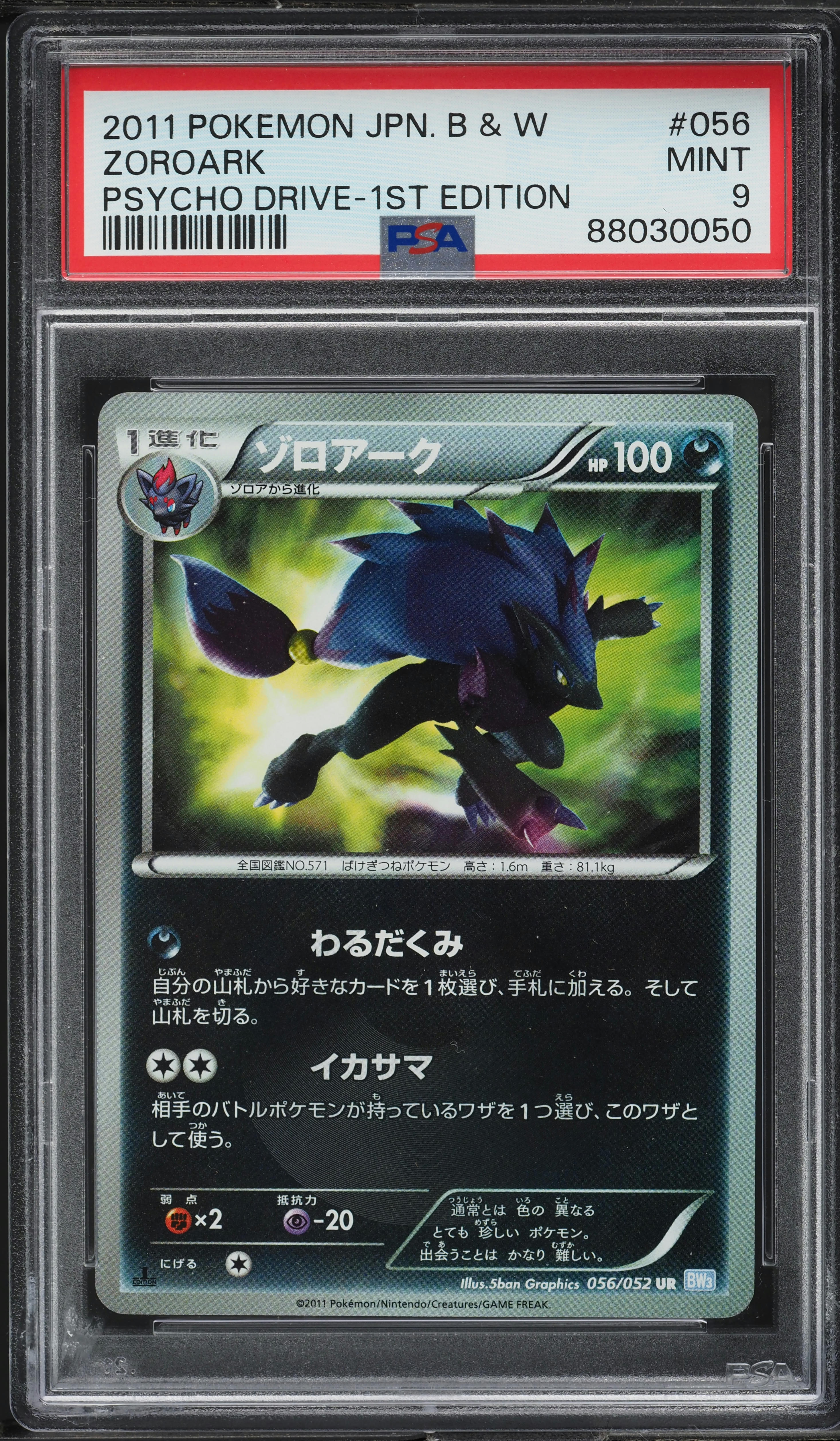 2011 POKEMON JPN B&W PSYCHO DRIVE 1ST ED #056 ZOROARK PSA 10