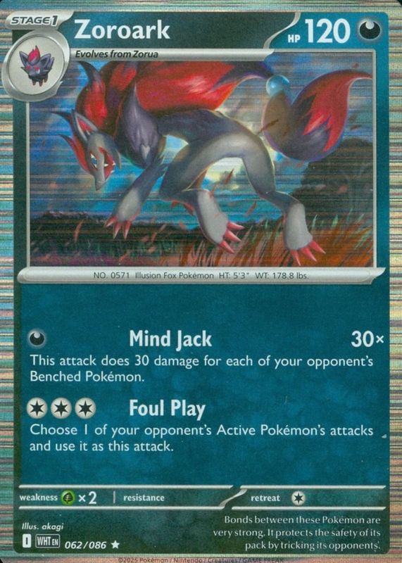 Zoroark 2025 Scarlet & Violet: White Flare #062/086 Holo RAW TCG (LIGHTLY PLAYED) Price Guide