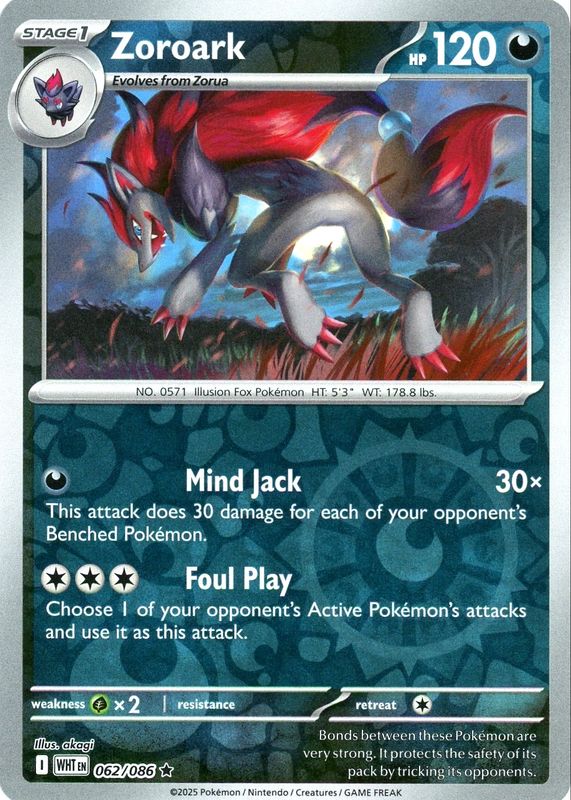 Zoroark 2025 Scarlet & Violet: White Flare #062/086 Reverse Holo RAW TCG (NEAR MINT) Price Guide
