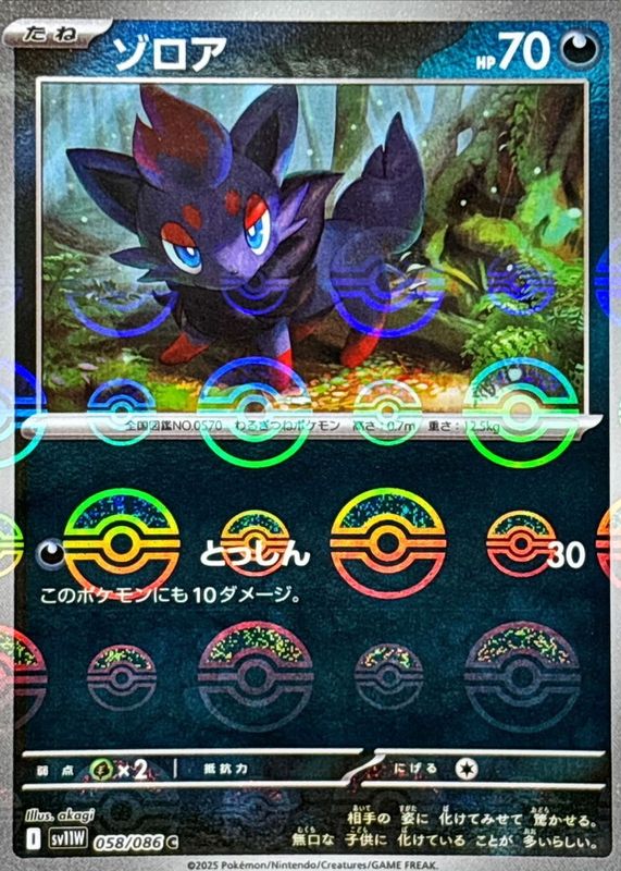 Zorua (Poké Ball Reverse Holo) C 058/086 SV11/JAPANESE Pokemon White Flare TCG