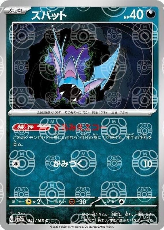 Zubat 2023 Japanese Scarlet & Violet: 151 #041/165 Master Ball Reverse Holo RAW TCG (NEAR MINT) Price Guide