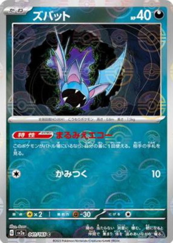 Zubat 041/165 Near Mint Pokeball Reverse Holo 151 Japanese Pokemon SV2a 2023
