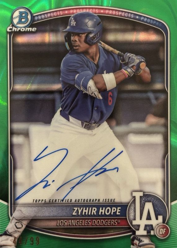 2025 Bowman Chrome CPA-ZH Zyhir Hope Green Lava Auto 2/99 Los Angeles Dodgers
