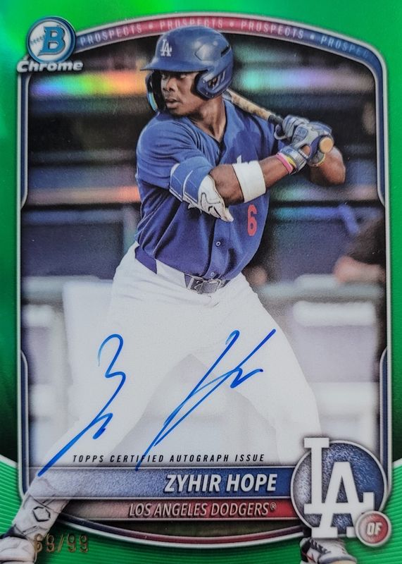 2025 Bowman Chrome #CPA-ZH Zyhir Hope Green Refractor Auto Autograph /99 Dodgers
