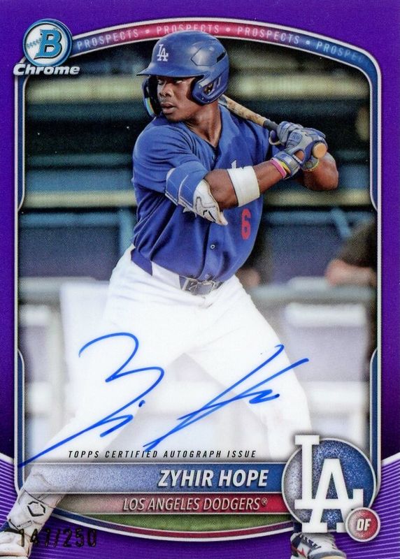 2025 Bowman Chrome Autographs Purple #CPA-ZH Zyhir Hope #/250 Dodgers RC JA