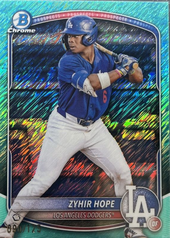 The Zyhir Hope 2025 Bowman #BCP-2 Chrome Prospects - Aqua Shimmer Refractor /125 card in Raw condition has moved up $18.49 (+336%) in the last 30 days and was last sold for $23.99 .