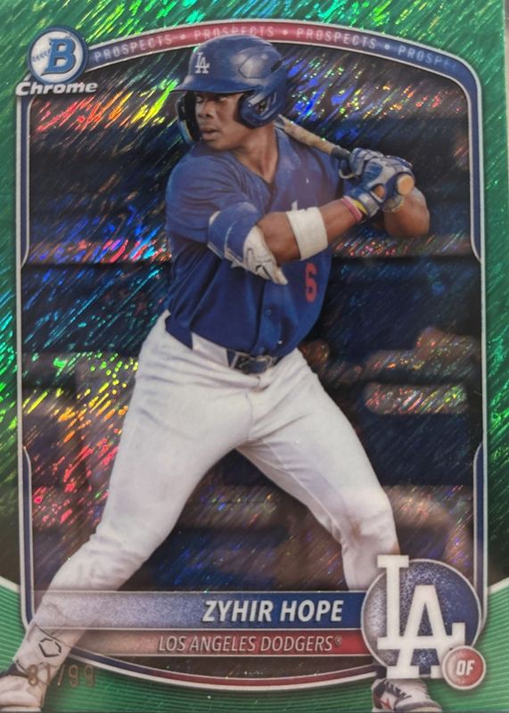 2025 Bowman Chrome Zyhir Hope Green Shimmer Refractor /99 Dodgers BCP-2