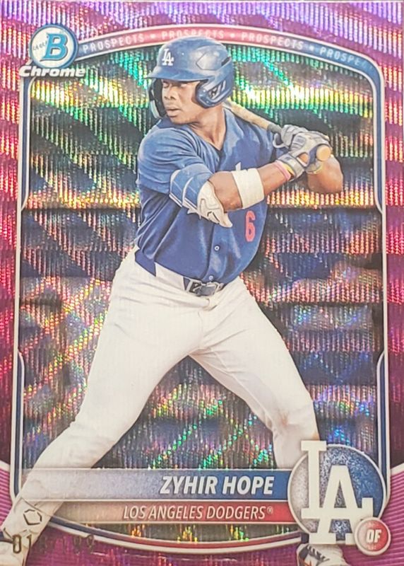 The Zyhir Hope 2025 Bowman #BCP-2 Chrome Prospects - Purple Wave Refractor /199 card in Raw condition has not changed in price in the last 30 days and was last sold for $17.50 .