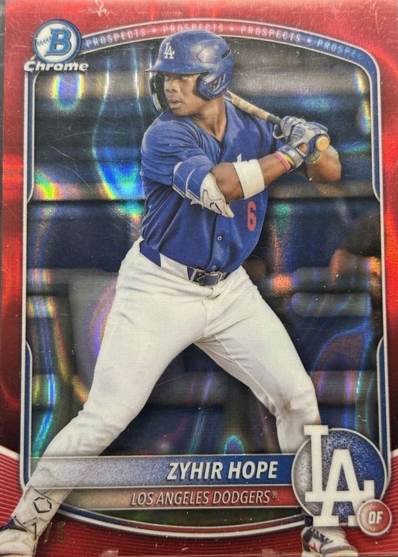 The Zyhir Hope 2025 Bowman #BCP-2 Chrome Prospects - Red Lava Refractor /5 card in Raw condition has not changed in price in the last 30 days and was last sold for $144.50 .