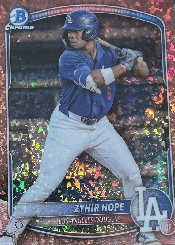 This card is 1 of 88 Zyhir Hope's card variations in the 2025 Bowman set being tracked by Sports Card Investor, including Chrome Prospects, Chrome Prospects - Gumball Refractor, Chrome Prospects - Mini Diamond Refractor, Chrome Prospects - Peanuts Refractor, and Chrome Prospects - Pearl Refractor.