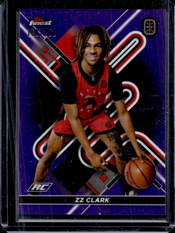 The ZZ Clark 2022 Topps Finest OTE Overtime Elite #42 Purple Refractor /250 Rookie card is 1 of 83 ZZ Clark's card variations in the 2022 Topps Finest OTE Overtime Elite set being tracked by Sports Card Investor, including #9 Base, #47 Base, #42 Base, #38 Base, and #47 Refractor.