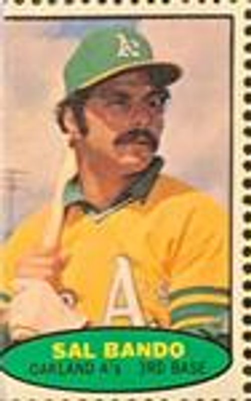 The top trending card in 1974 Topps Stamps is currently Sal Bando 1974 Topps Stamps Base.