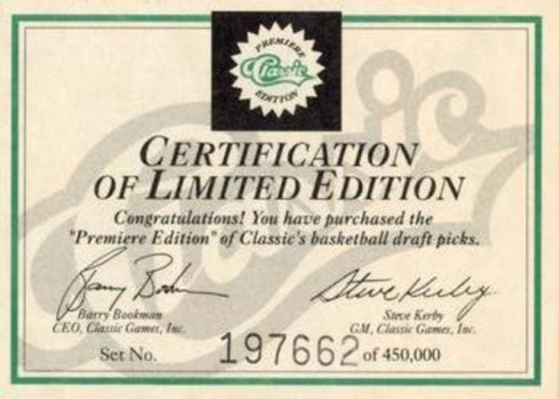1991 Classic Flagship Certification of Limited Edition Checklist