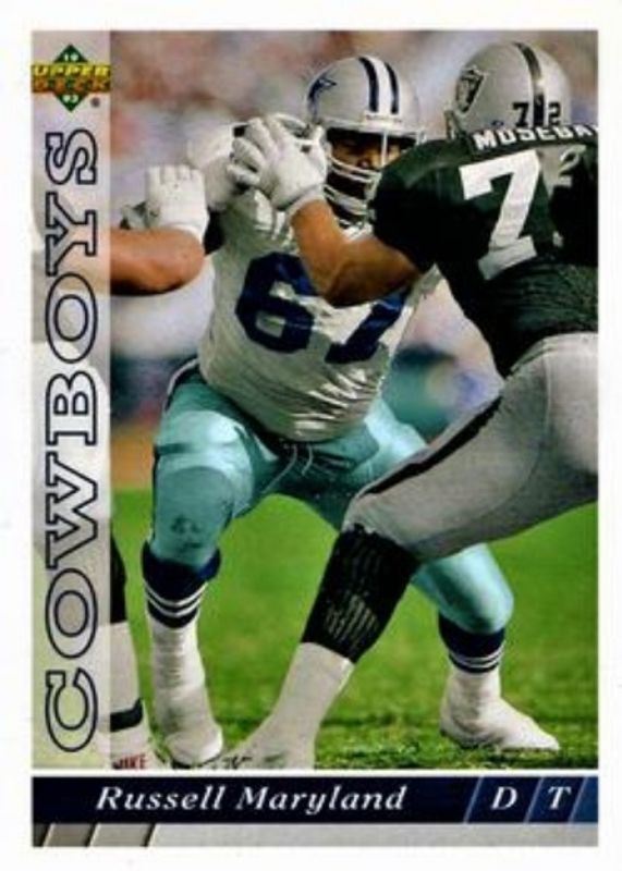 The top trending card in 1993 Upper Deck Dallas Cowboys is currently Russell Maryland 1993 Upper Deck Dallas Cowboys #D24 Base.