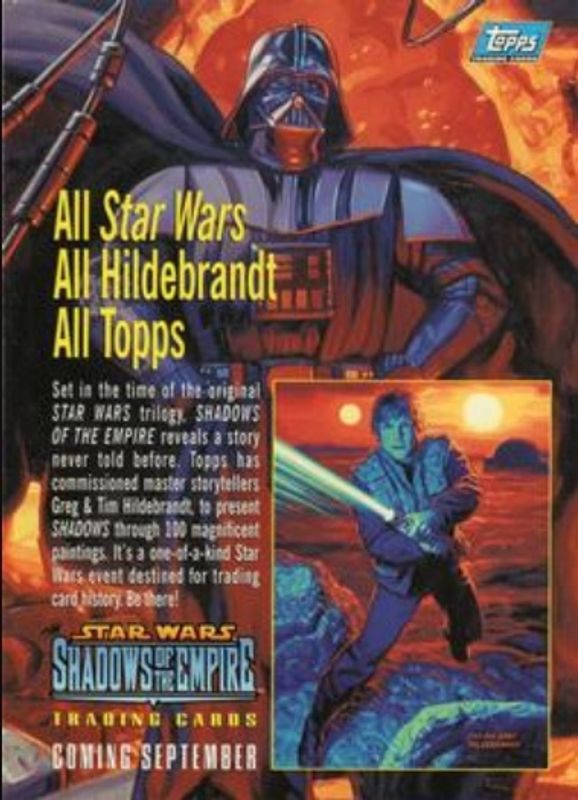 The top trending card in 1996 Topps Star Wars Shadows of the Empire is currently Darth Vader / Prince Xizor 1996 Topps Star Wars Shadows of the Empire #SOTE3 Promos.