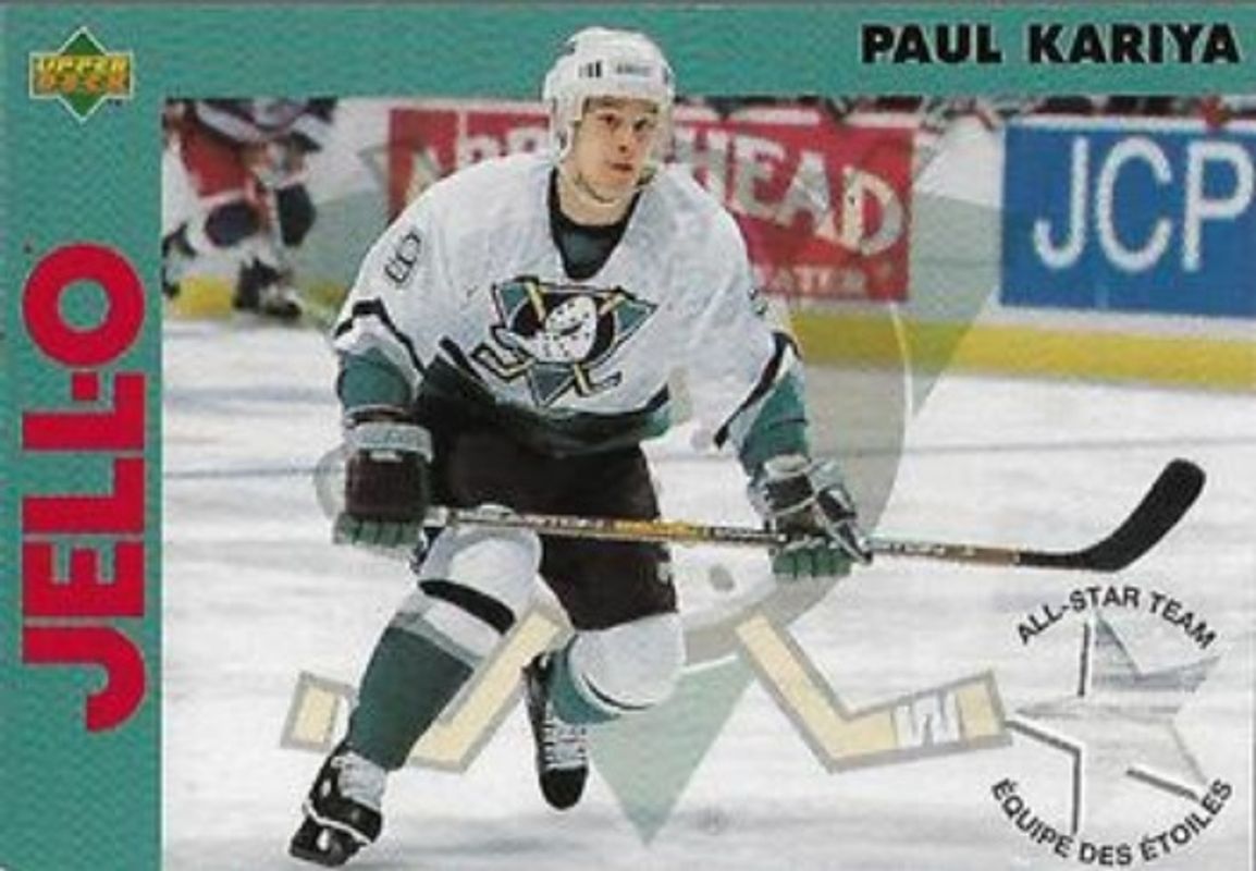 The top trending card in 1996 Upper Deck Kraft is currently Paul Kariya 1996 Upper Deck Kraft Jell O All Stars.