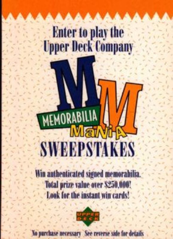 1998 Upper Deck Memorabilia Mania Sweepstakes Entry