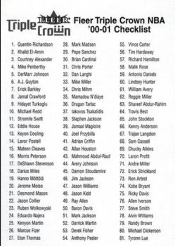 The top trending card in 2000 Fleer Triple Crown is currently Checklist (NBA) 2000 Fleer Triple Crown Checklists.