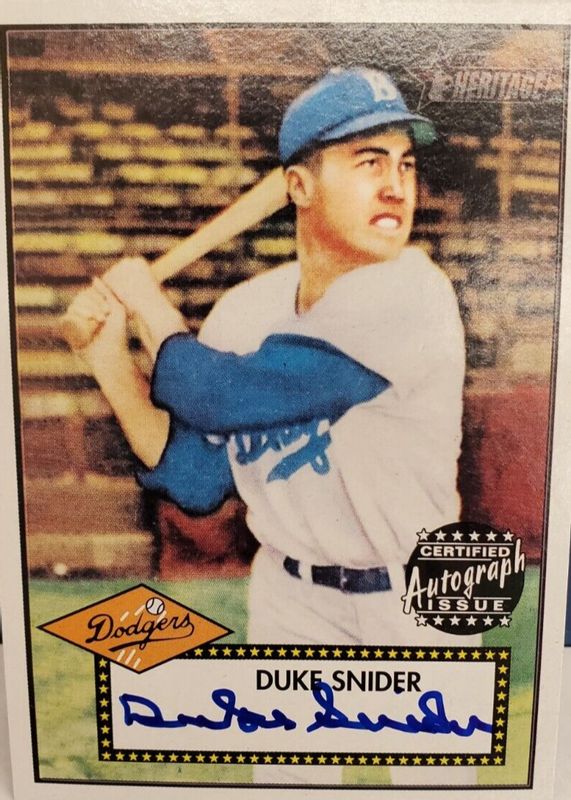 The top trending card in 2001 Topps Heritage is currently Duke Snider 2001 Topps Heritage #THA-DS Real One Autographs.