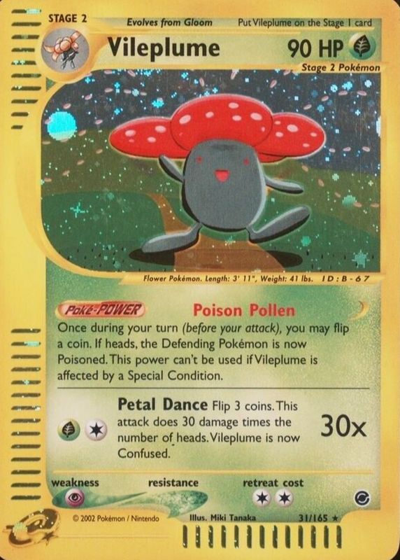 The top trending card in 2002 Expedition is currently Vileplume 2002 Expedition #031/165 Holo.