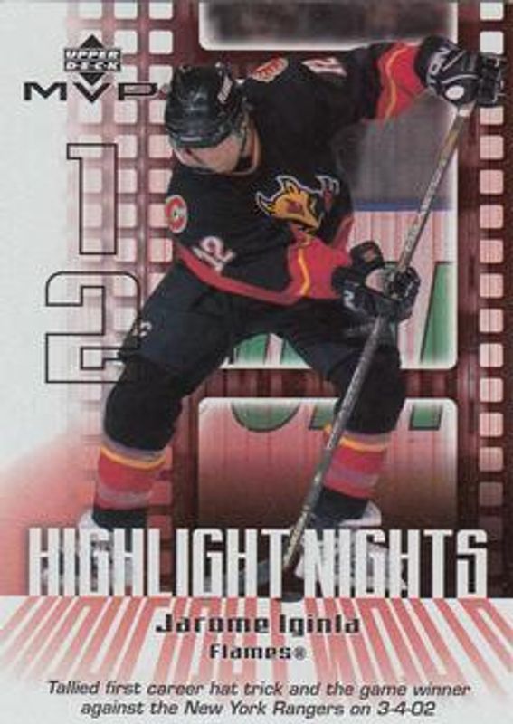 The top trending card in 2002 Upper Deck MVP is currently Jarome Iginla 2002 Upper Deck MVP #HN3 Highlight Nights.