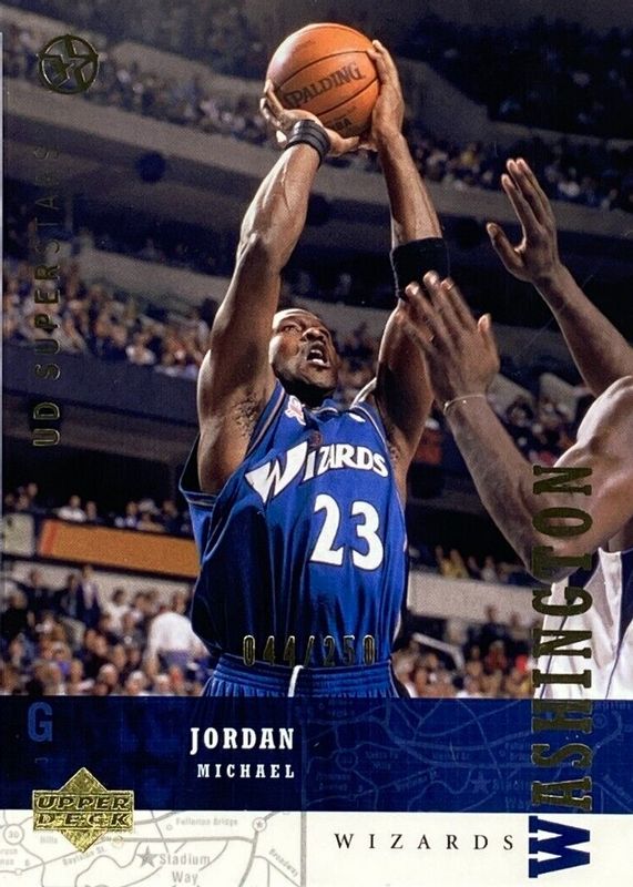 We track 1 players in 2002 Upper Deck SuperStars cards set including Michael Jordan.