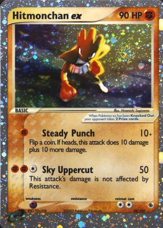 The top trending card in 2003 EX: Ruby & Sapphire is currently Hitmonchan ex 2003 EX: Ruby & Sapphire #098/109 Holo.