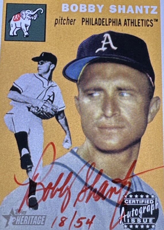 The top trending card in 2003 Topps Heritage is currently Bobby Shantz 2003 Topps Heritage #RO-BSH Real One Autographs - Red Ink /54.