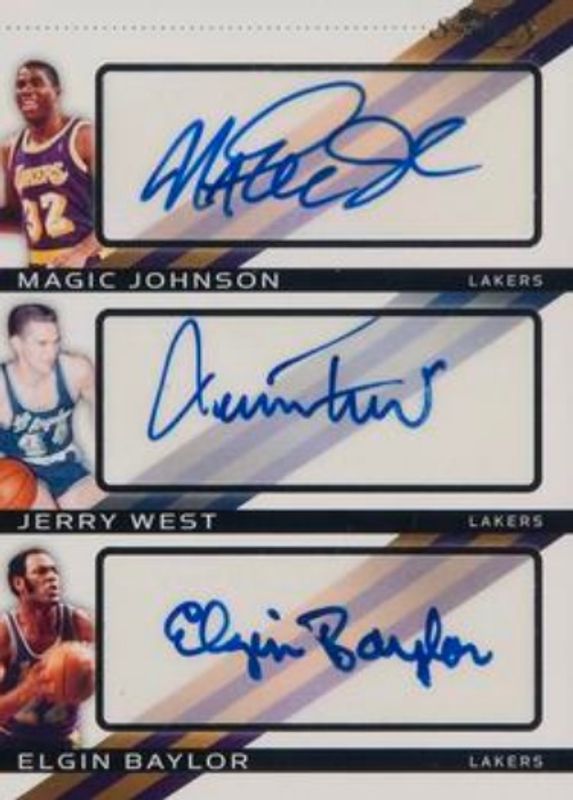 The top trending card in 2008 Topps Signature is currently Elgin Baylor / Jerry West / Magic Johnson 2008 Topps Signature #TST-JWB Autographs Triple /9.