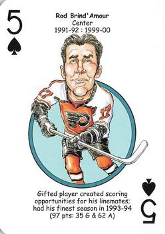 The top trending card in 2010 Hero Decks Philadelphia Flyers is currently Rod Brind Amour 2010 Hero Decks Philadelphia Flyers #5♠ Base.