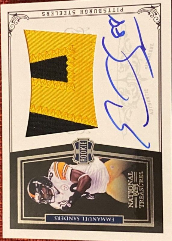 The top trending card in 2010 National Treasures is currently Emmanuel Sanders 2010 National Treasures #312 Rookie Patch Auto /99.