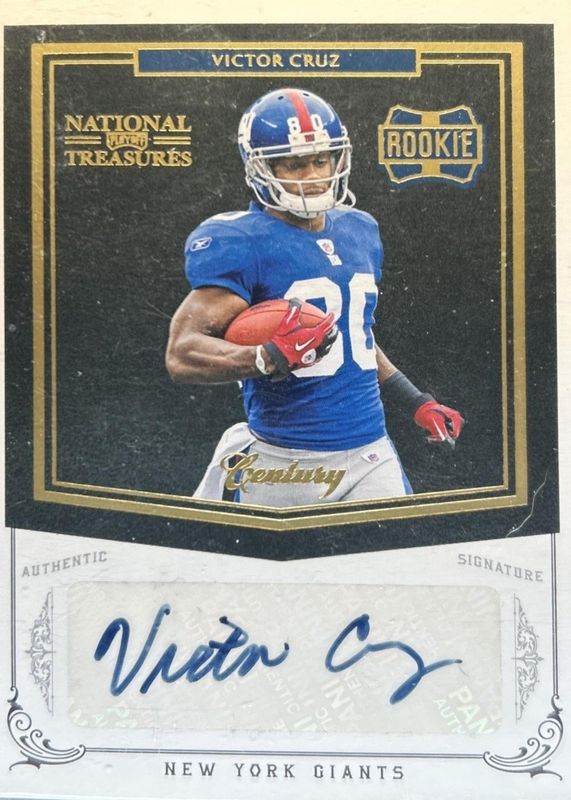The top trending card in 2010 National Treasures is currently Victor Cruz 2010 National Treasures #299 Rookie Autographs - Gold /25.