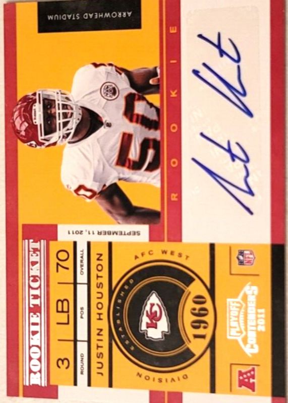 The top trending card in 2011 Contenders is currently Justin Houston 2011 Contenders #147 Rookie Ticket Auto.