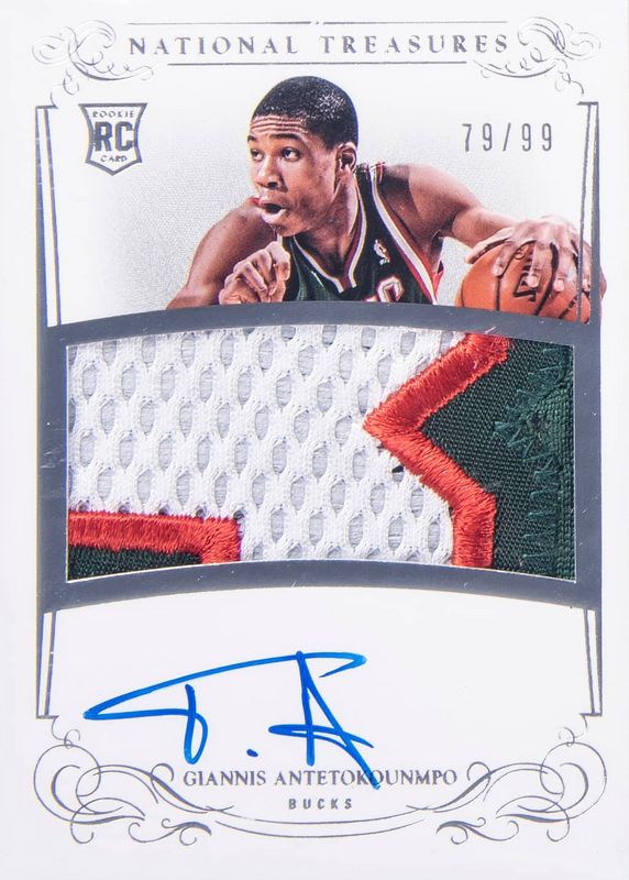 The top trending card in 2013 National Treasures is currently Giannis Antetokounmpo 2013 National Treasures #130 Rookie Patch Auto /99.