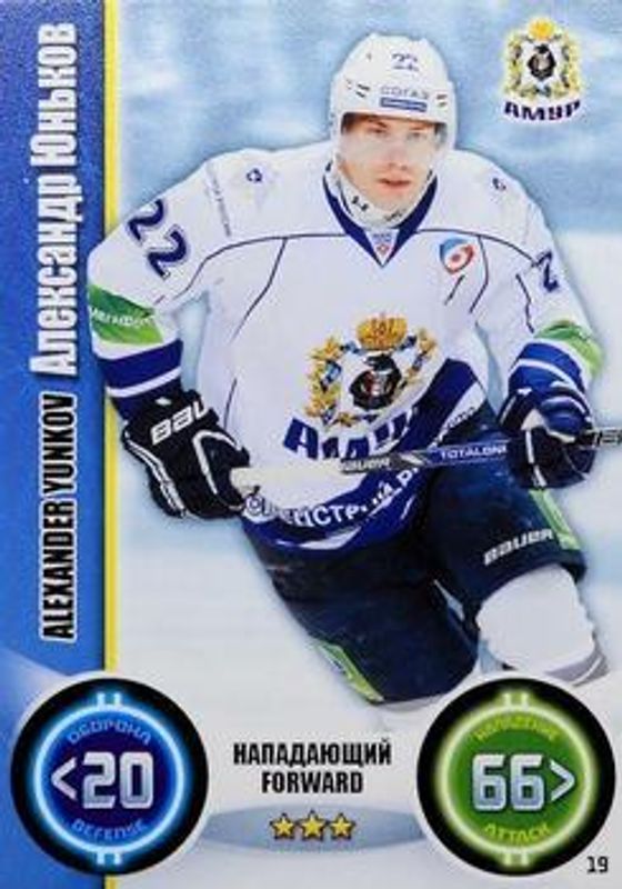 The top trending card in 2013 Topps KHL Stars (Russian) is currently Alexander Yunkov 2013 Topps KHL Stars (Russian) #19 Base.