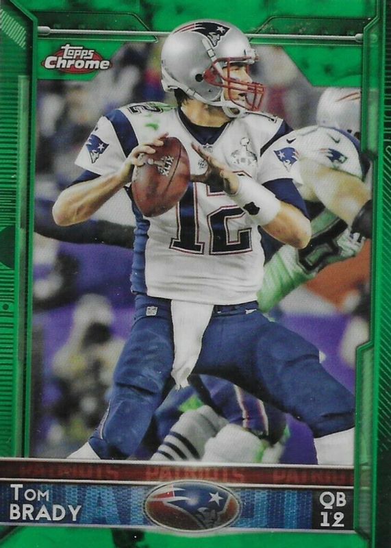 The top trending card in 2015 Topps Chrome is currently Tom Brady 2015 Topps Chrome #50 Green Refractor.