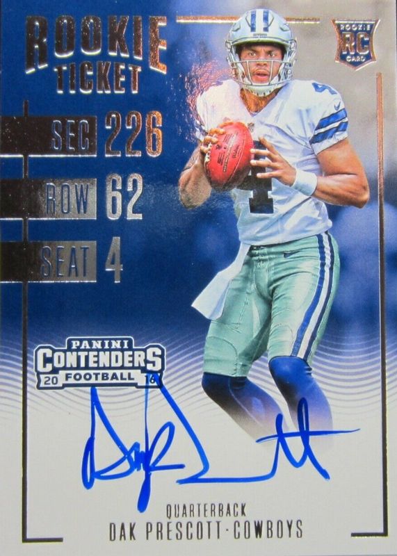 The top trending card in 2016 Contenders is currently Dak Prescott 2016 Contenders #307 Rookie Ticket Auto.