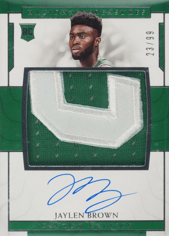 The top trending card in 2016 National Treasures is currently Jaylen Brown 2016 National Treasures #104 Rookie Patch Auto /99.