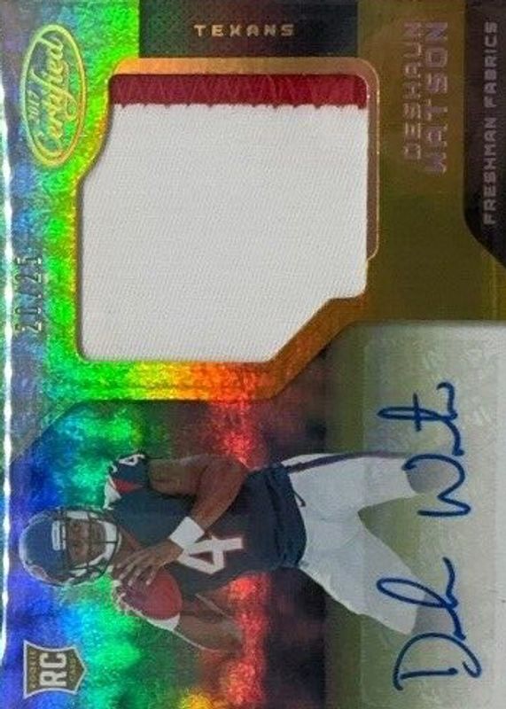 We track 7 players in 2017 Certified cards set including Patrick Mahomes II, TJ Watt, Christian McCaffrey, Myles Garrett, Alvin Kamara, Cooper Kupp, and Deshaun Watson.